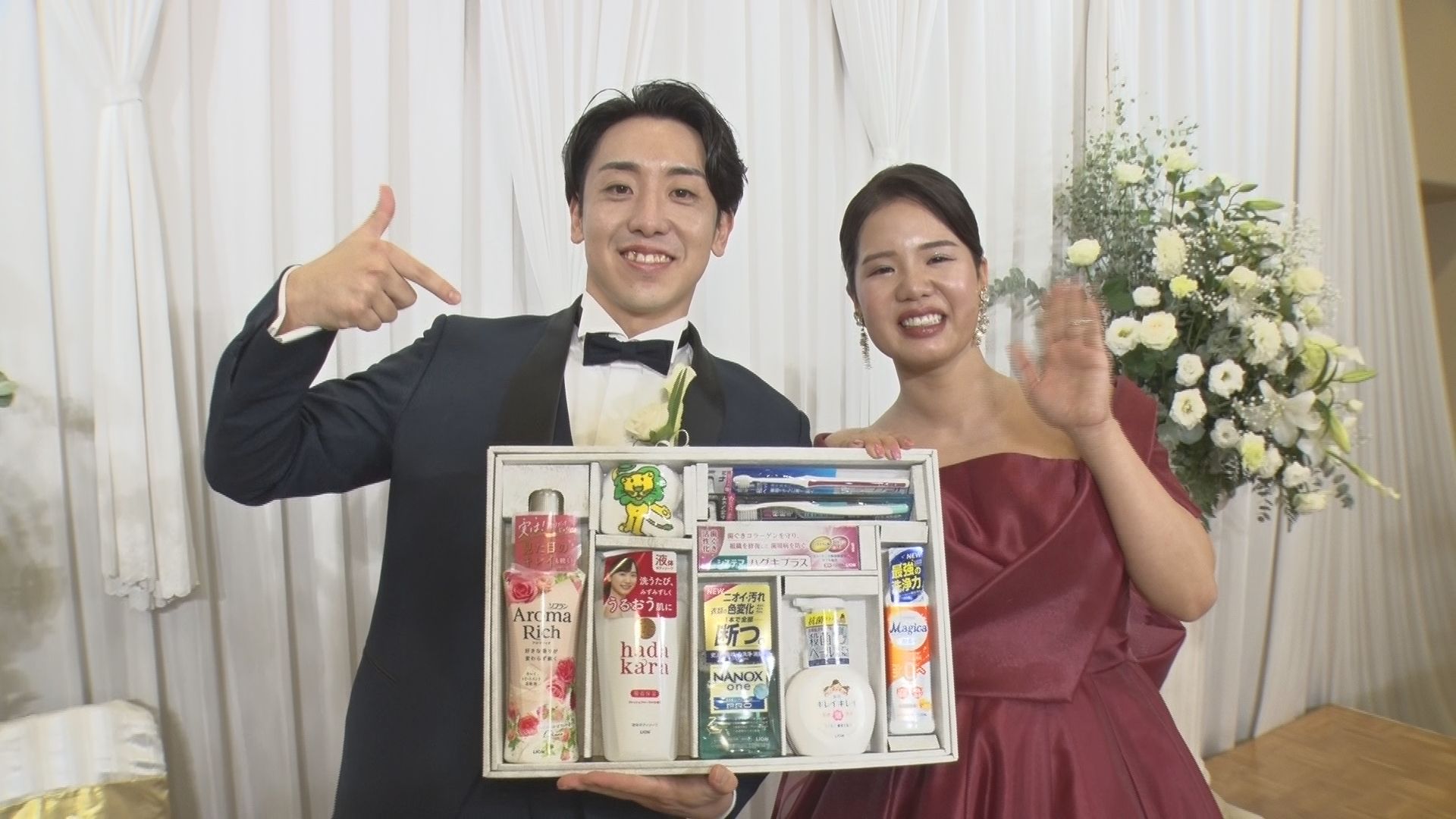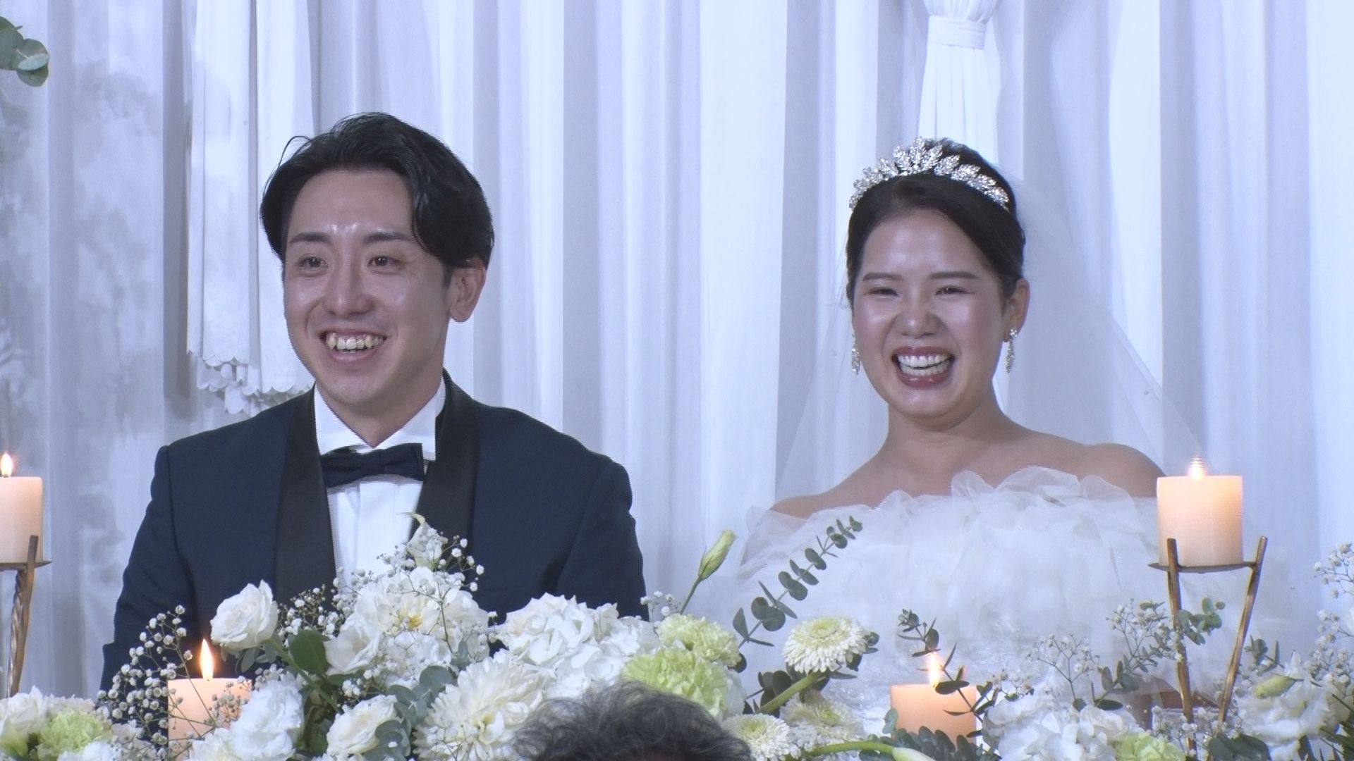 親子2代にわたっての出演者がいるほどの長寿番組。「今週の幸せカップルは~」のおなじみのフレーズで始まり、リポーターが披露宴中の新婚さんに話を聞いていきます。