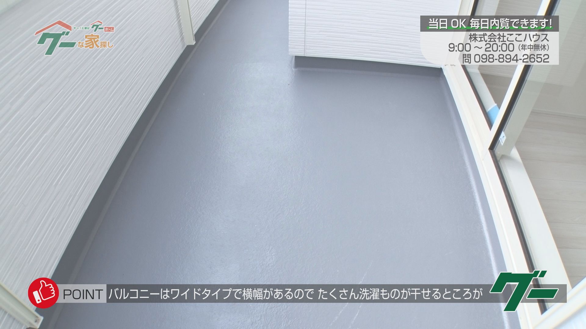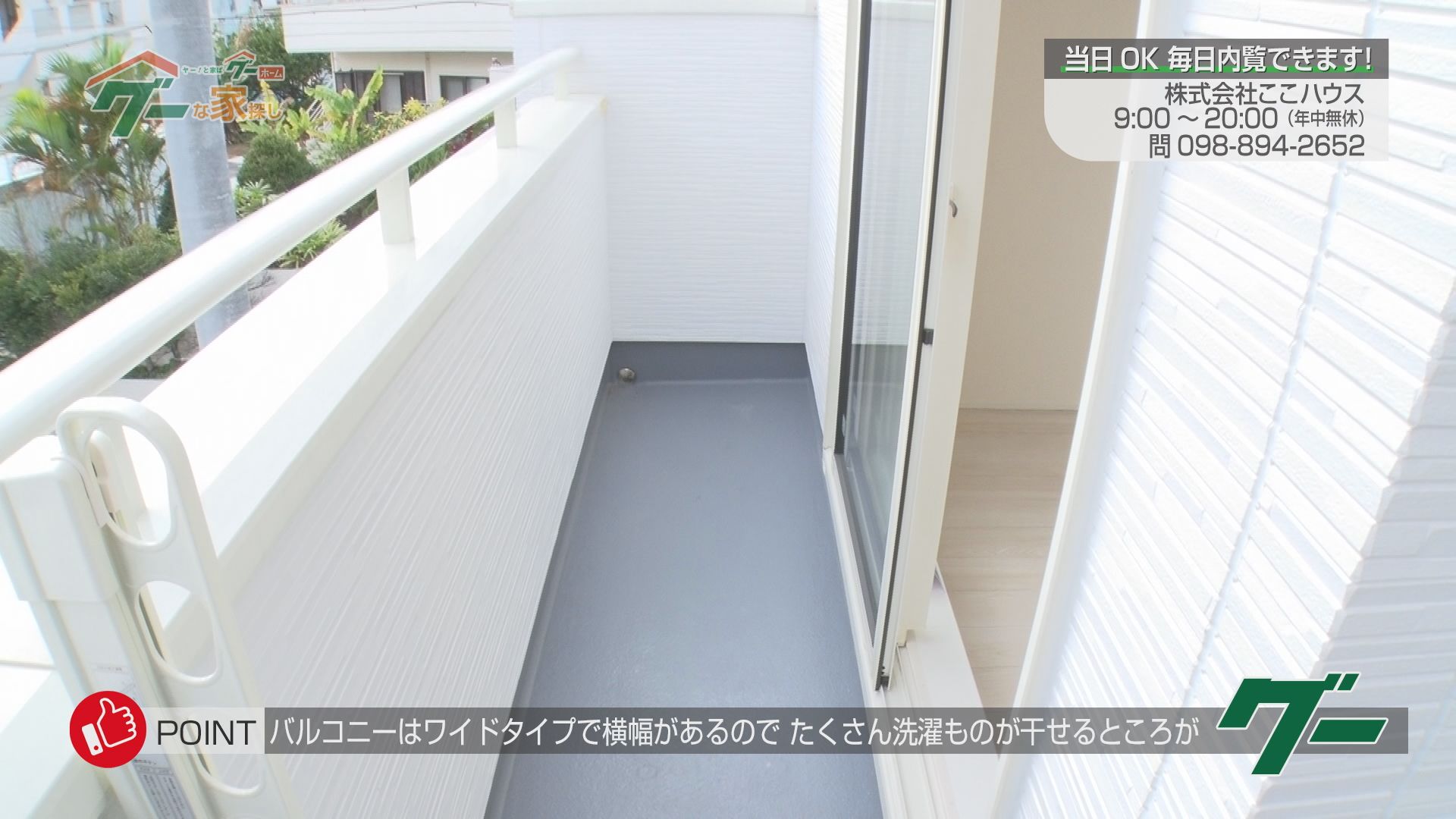 Gooポイント③「バルコニーはワイドタイプで横幅があるので、たくさん洗濯ものが干せるところがグー」