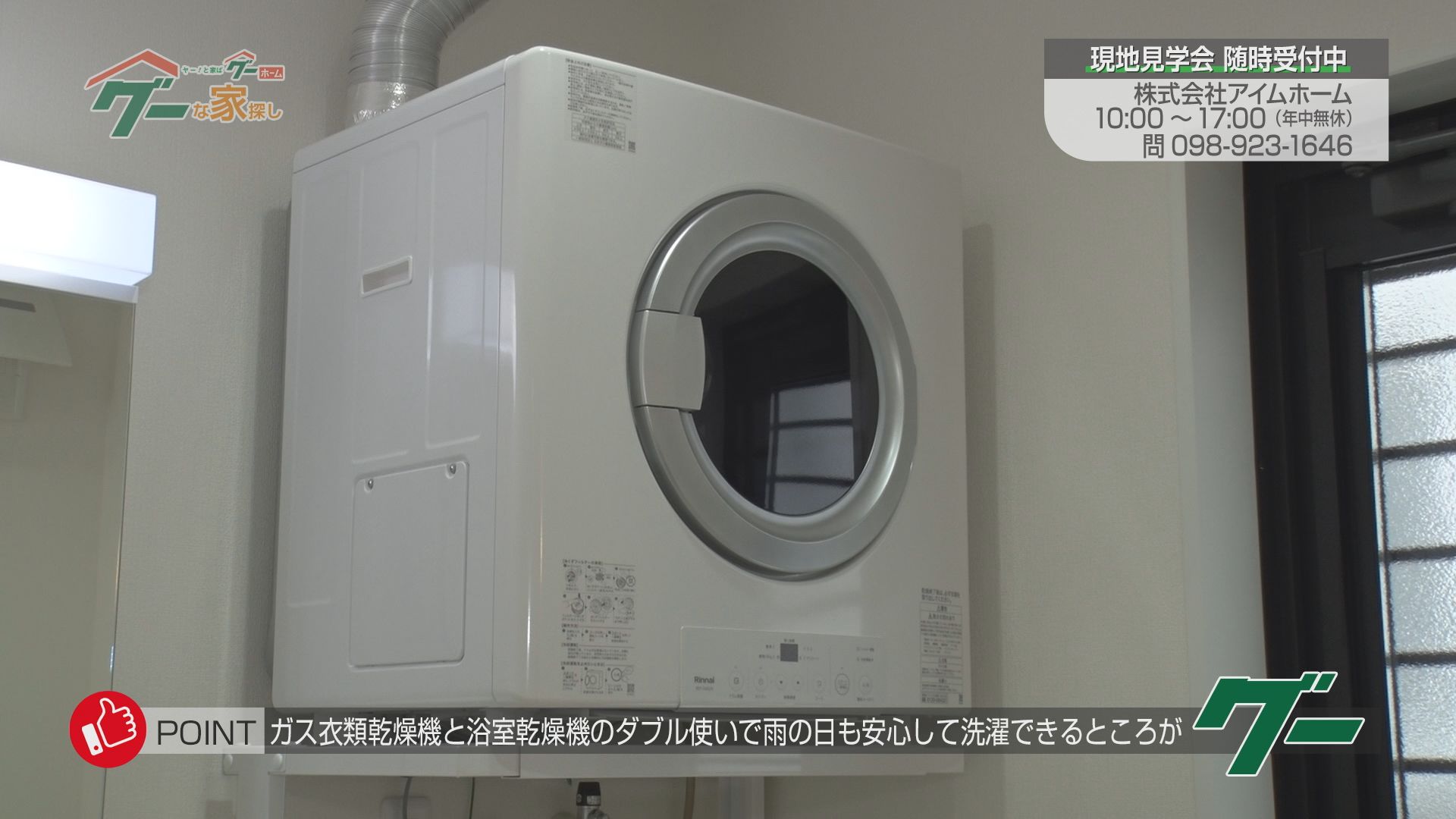 Gooポイント②「ガス衣類乾燥機と浴室乾燥機のダブル使いで雨の日も安心して洗濯できるところがグー」
