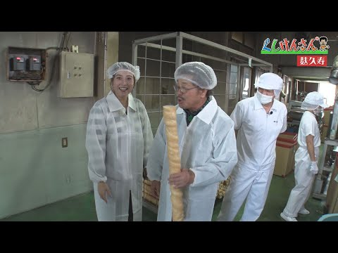 沖縄料理の定番のひとつ、フーチャンプルーに欠かせない「くるま麩」。工場を見学した具志堅さんと一緒に、製法や特徴など「くるま麩」への理解を深める25分!!