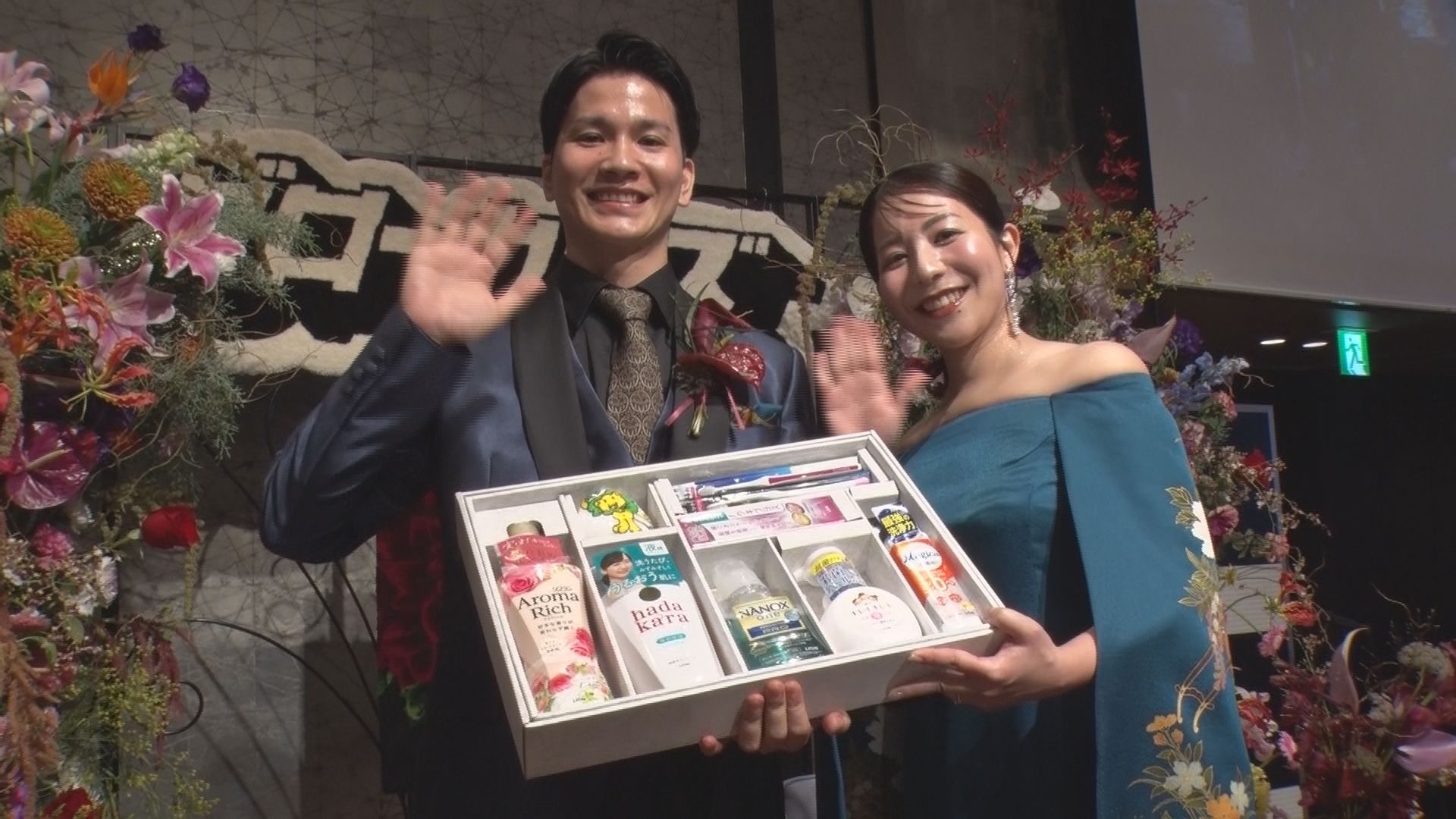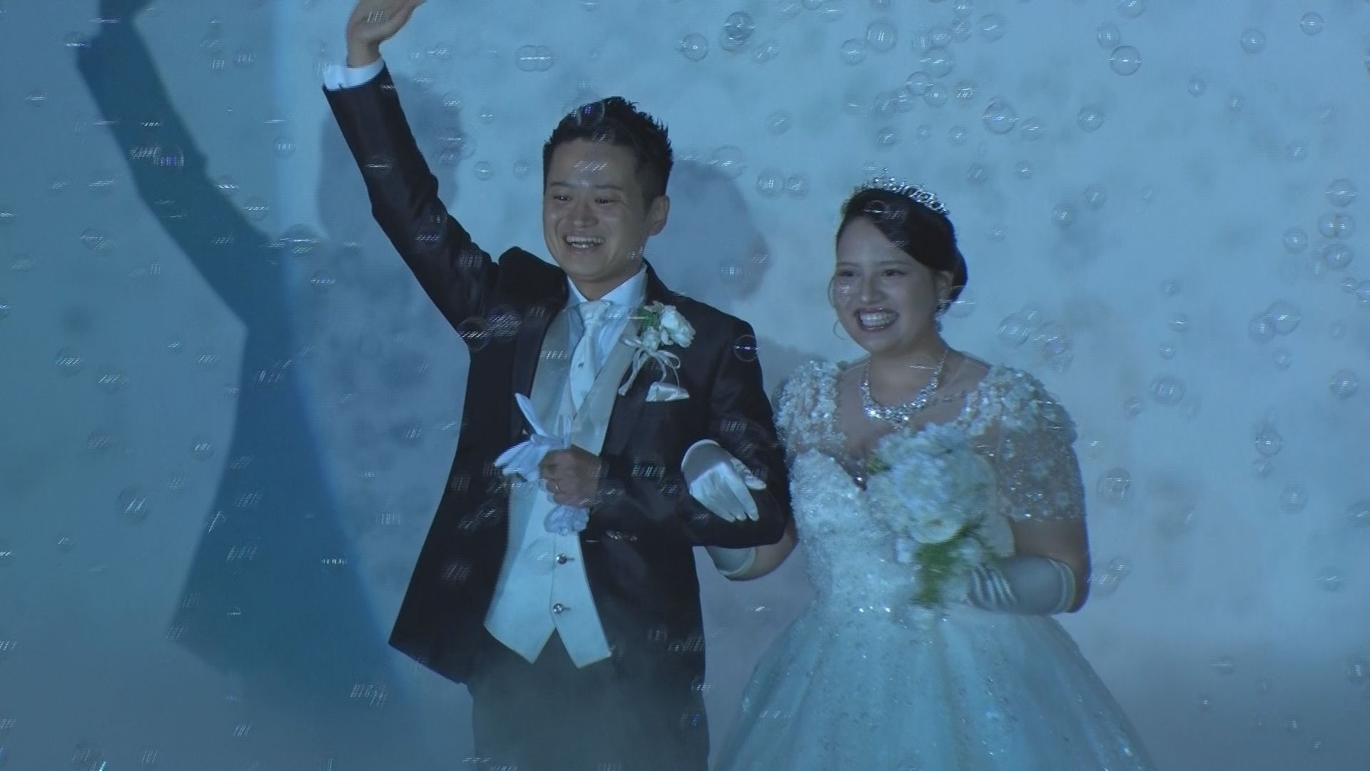 親子2代にわたっての出演者がいるほどの長寿番組。「今週の幸せカップルは~」のおなじみのフレーズで始まり、リポーターが披露宴中の新婚さんに話を聞いていきます。