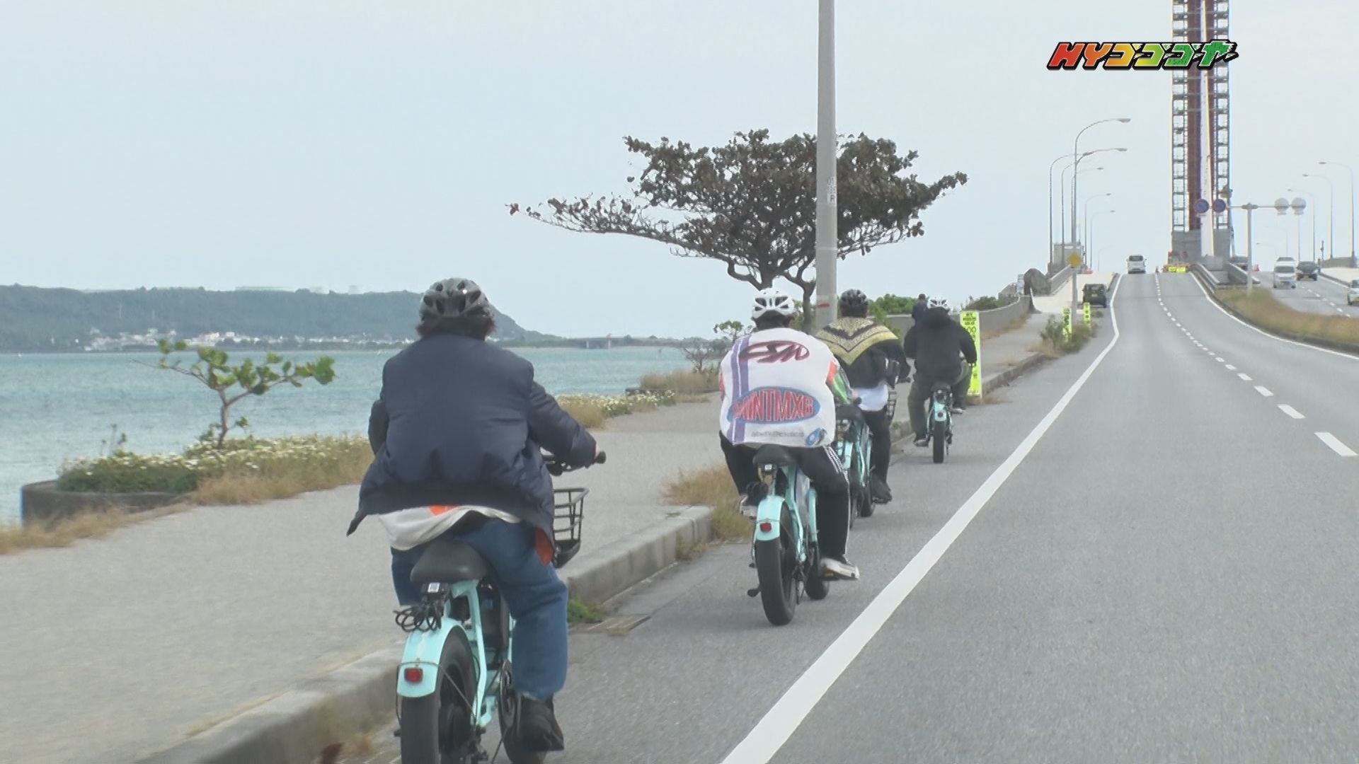 HYミュージアムのある施設に設置されたレンタルバイクで、浜比嘉島へサイクリング。