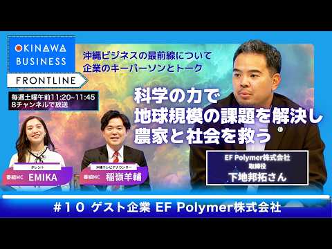 今週は科学の力で農家と世界を救う企業「EF Polymer株式会社」取締役の下地邦拓さんをお招きし彼らの取り組みや世界の課題、これからの未来について伺います!
