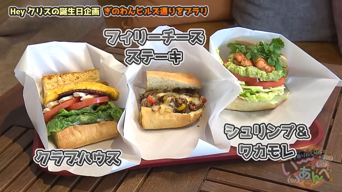 友近さんは「シュリンプ&ワカモレ」、りゅうたさんは「クラブハウス」、そして主役のクリスさんは「フィリーチーズステーキ」をチョイス!