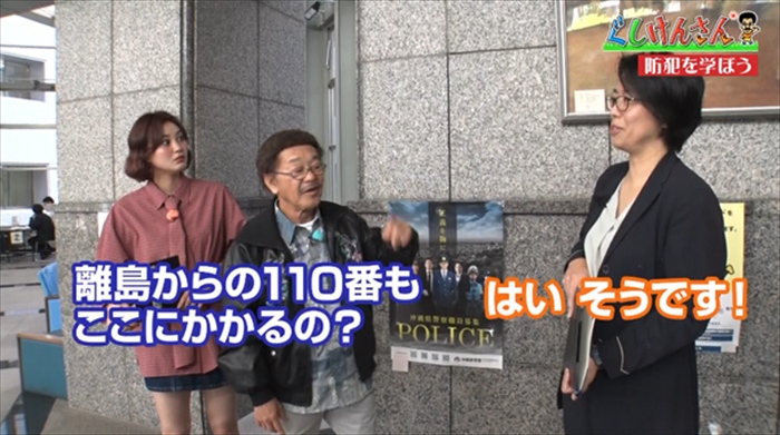 ピシッとした建物を前に、アシスタントの澪花(みおか)ちゃんが「今回はなんと沖縄県警察本部にやってまいりました!」と元気よく紹介すると、レジェンド・具志堅用高さんがすかさず一言。