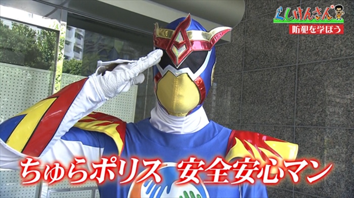 安全安心マンが「安全安心マンちゅら!」と宣言。