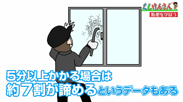 泥棒は侵入に5分以上かかると約7割が諦めるとのこと。つまり、時間をかけさせることが最大の防犯策!