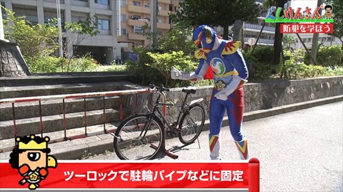 ちなみに自転車の盗難も多い沖縄では、自転車もツーロックで駐輪パイプなどにつなぐことが推奨されている。