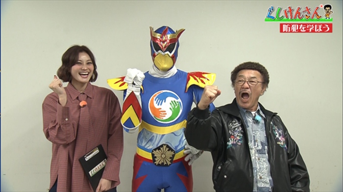 「県民総ぐるみで!」——安全安心マンが熱いメッセージを締めくくる