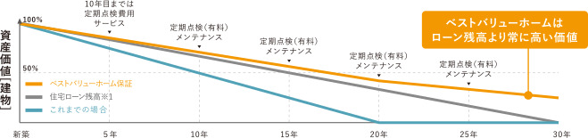 (*1)「Best Value Home」は一般社団法人長寿命住宅普及協会が提供する、住宅の資産価値を適正に評価し、将来にわたりその価値を保証するための仕組み。
