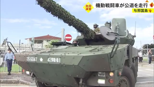 日米共同統合演習 与那国島で機動戦闘車が公道を走行
