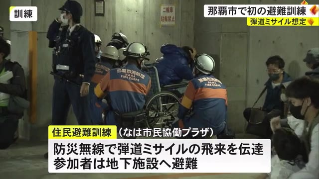 1月21日、なは市民協働プラザで行われた住民避難訓練は、外国から弾道ミサイルが発射され那覇市内に飛来する恐れがあることを想定して国と県、那覇市が共同で実施した。