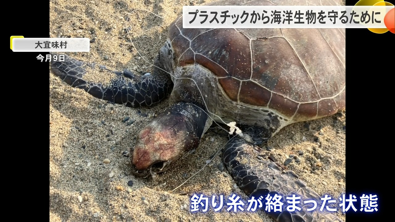 2025年1月9日には、首や前足に釣り糸がからまった状態のウミガメの死がいが大宜味村のビーチで見つかった。