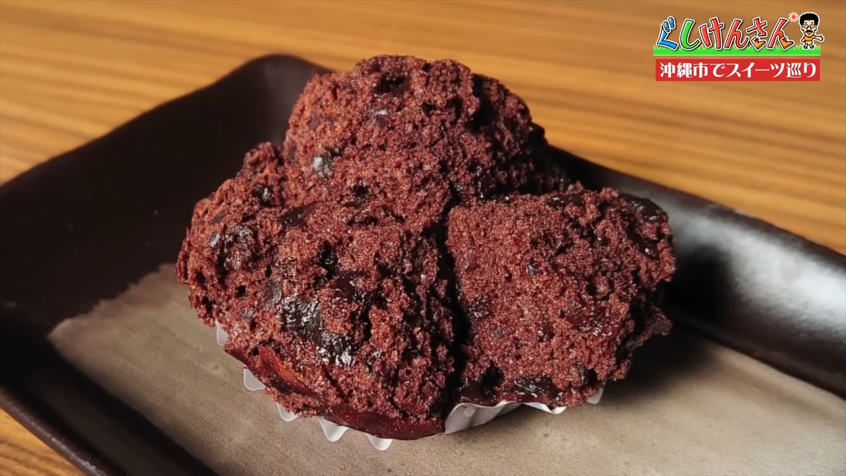 濃厚なチョコの香りが漂う中、一口食べたぐしけんさんは「口の中でなんかすごい騒ぐね」とそのしっとりとした食感を独特の言い回しで表現します。