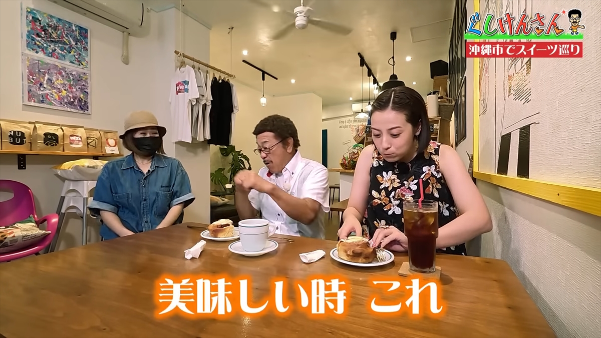 甘さも「ちょうどいい」と絶賛。以前「甘すぎる」という意見があったため調整したそうで、より甘さを求める人向けのメニューもあるとのこと。外国人客も多く、英語での対応も可能だという話に、英語力について聞かれたぐしけんさんは「ちょっちゅね」と照れ笑いを浮かべていました。