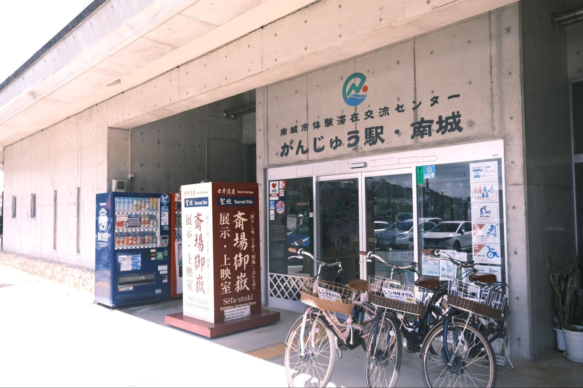 スタンプラリーの“始まりの地”である「がんじゅう駅・南城」(体験滞在交流センター)では、南城市のさまざまなスポットを紹介するパネル展示や琉装(琉球王国時代の衣装)体験、聖地「斎場御嶽」についての常設展示など、たくさんの情報を得ることができる場所だ。