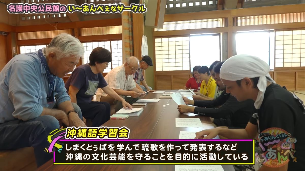 「うわー、立派な公民館!」「ここで34ものサークルが活動してるんですって!」名護中央公民館に到着した一行は、その規模と活気にびっくり!