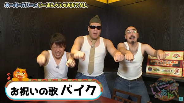 今回は、今年の沖縄イチ面白いコンビに選ばれた「めーばーカリー」をいろんなキャラが祝福!