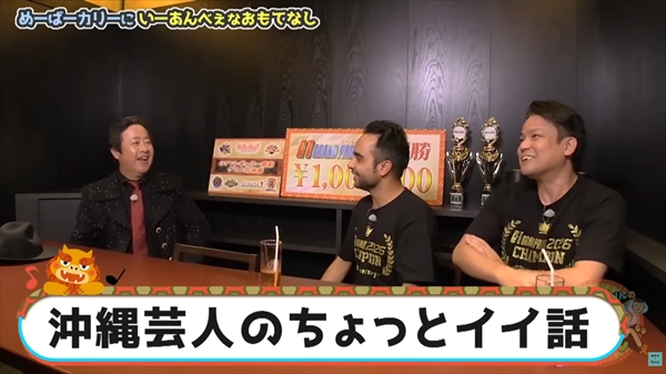 今回は、沖縄のお笑い賞レース「O-1グランプリ」で見事2連覇を達成したお笑いコンビ「めーばーカリー」を、豪華お寿司でお祝いします!