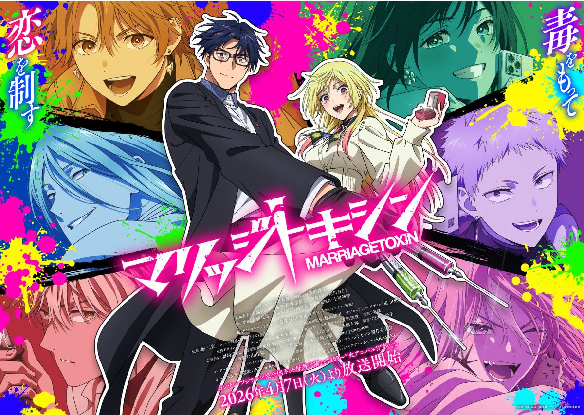 TVアニメ『マリッジトキシン』は、代々“毒使い”として暗躍してきた殺し屋一族の跡取り・下呂ヒカルが主人公。恋愛経験ゼロの彼は、家系存続のために結婚を迫られるが、妹を守るため自ら婚活に挑むことを決意する。とある殺しのターゲットとして出会った凄腕の結婚詐欺師・城崎メイに婚活の手伝いを依頼することになり…。殺し屋と結婚詐欺師という異色のコンビがタッグを組み、恋と命がけの婚活ミッションに挑む、婚活バトルアクションとなっています。