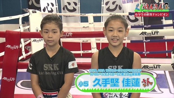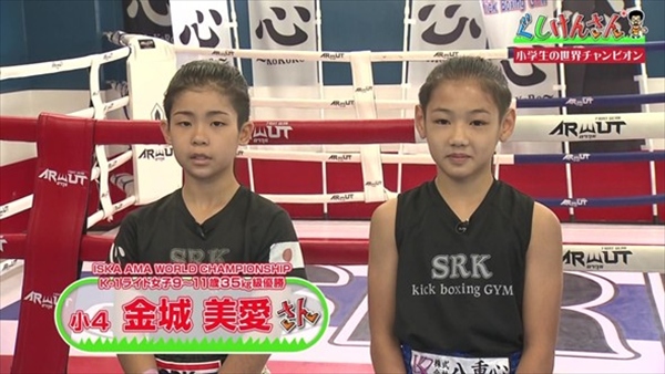 いよいよ登場したのが、小学生の世界チャンピオンたち。まずは久手堅佳蓮ちゃん(10歳・5年生)と金城美愛ちゃん(10歳・4年生)