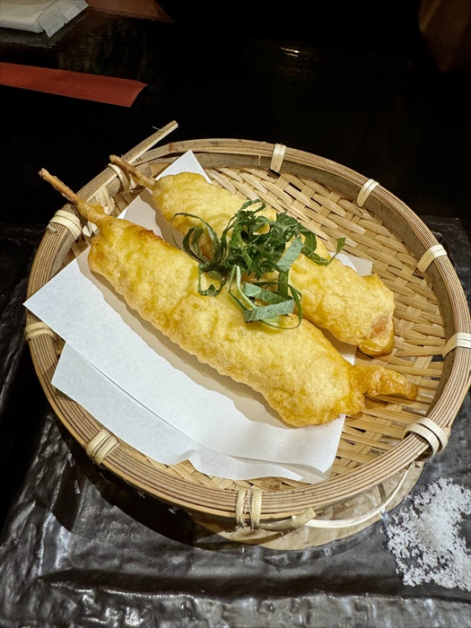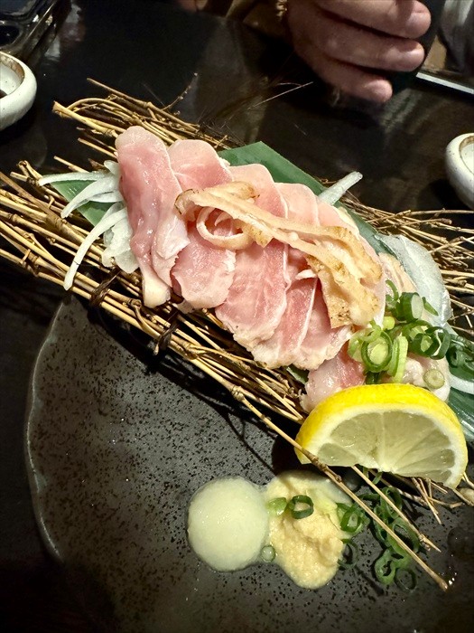 “裏メニュー”の、皮トロ付きせせり刺し。
