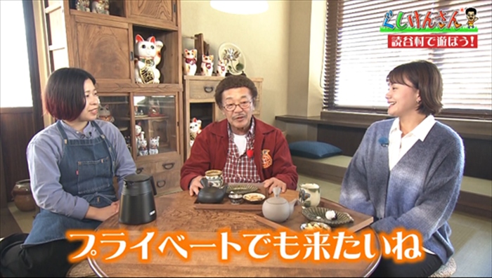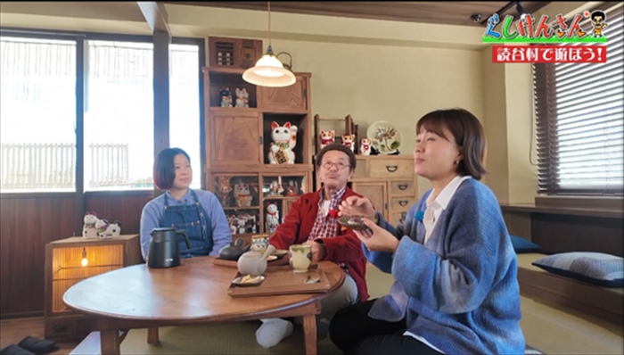 一口飲んだぐしけんさんが「あー……おいしい」と目を細め、「これですよ、お茶」とうっとり。