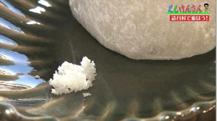 別添えでシママースの塩が出てきて、大福につけて食べると——「漬けたほうがおいしい!もう最初から漬ければよかったな、俺」とぐしけんさんが思わず叫ぶ。