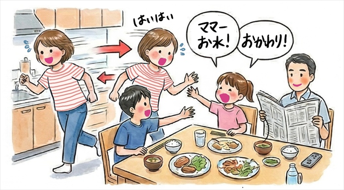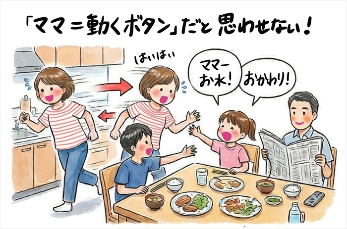 毎日、端っこでバタバタ動いて要求に応えるママの姿を見て育つと、子どもは無意識に「お母さんは、私たちの願いを叶える装置なんだ」と学習しちゃいます。