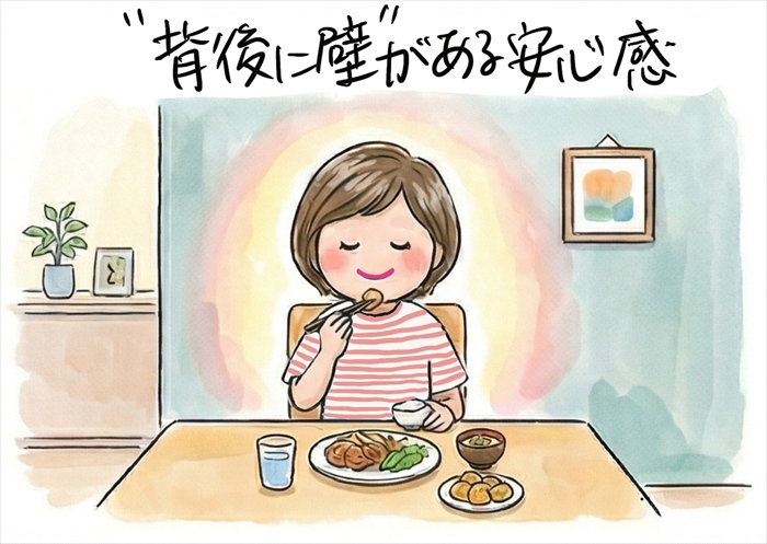 空間における心理学では、「背後に人が通らない、壁がある場所」が一番リラックスできると言われています。