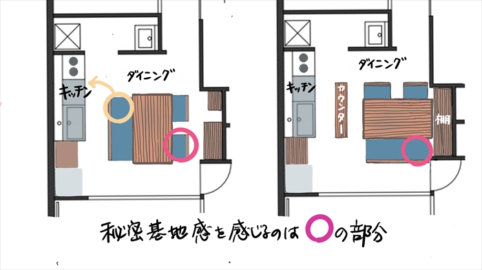 でも、今の住まいは昔の開放的な家とは違います。一人だけキッチンとの境界線に留まっていると、家族の輪から外れたような「寂しさ」を感じやすくなってしまうんです。