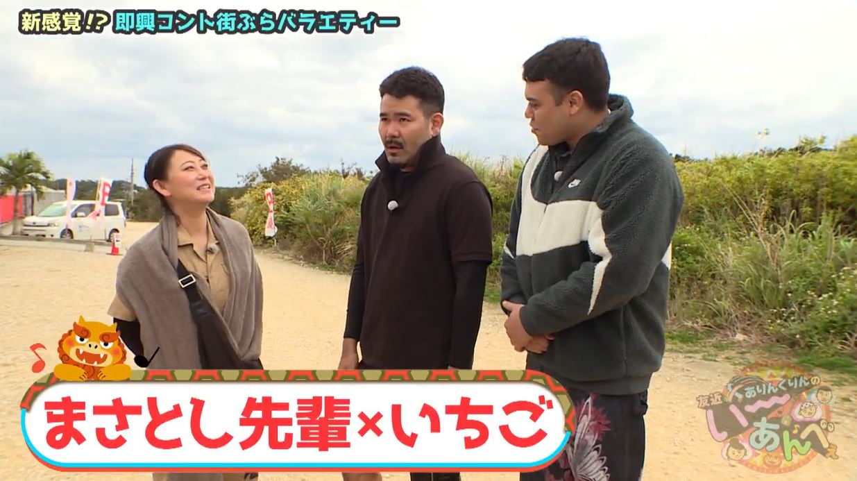 即興コント女王・友近が、沖縄の人気芸人ありんくりん(ひがりゅうた・クリス)と一緒に沖縄中を巡ったり、即興コントを楽しみながら、お茶の間にい~あんべぇなひとときをお届けする即興コント街ブラバラエティー。
