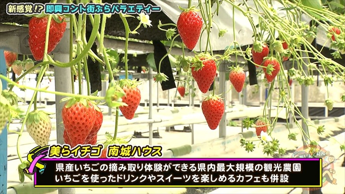 やってきたのは、南城市にあるビニールハウスが立ち並ぶ「美ら(ちゅら)いイチゴ 南城ハウス」。