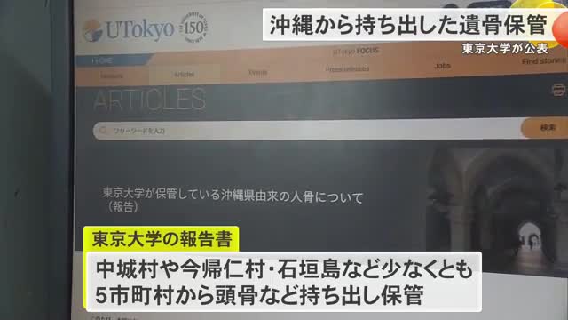東大が沖縄から持ち出した遺骨保管を公表 学術調査目的で5つの市町村から収集か