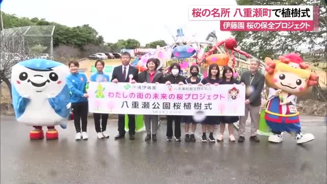 本島南部の桜の名所 八重瀬町で植樹式 伊藤園「わたしの街の未来の桜プロジェクト」美しい桜の開花願う