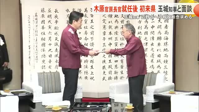 就任後初来県の木原官房長官玉城知事と面談し辺野古について意見交わす