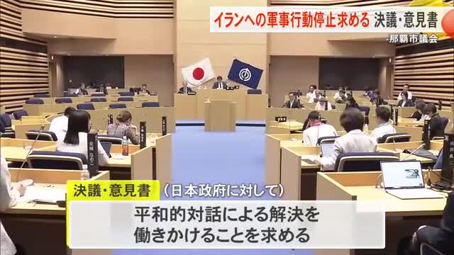 イラン情勢の平和的解決を求める意見書可決 那覇市議会で全会一致