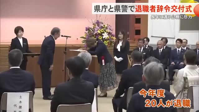 県庁と県警で退職者辞令交付式 長年に渡り公務に尽力 万感の思いで庁舎を後に