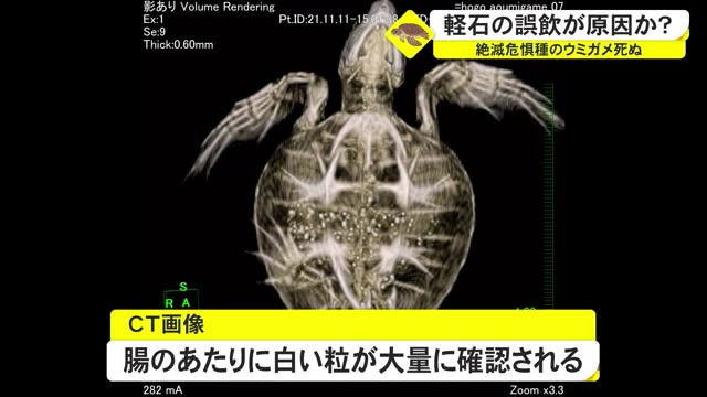 絶滅危惧種のウミガメが死ぬ 体内から大量の軽石が見つかる