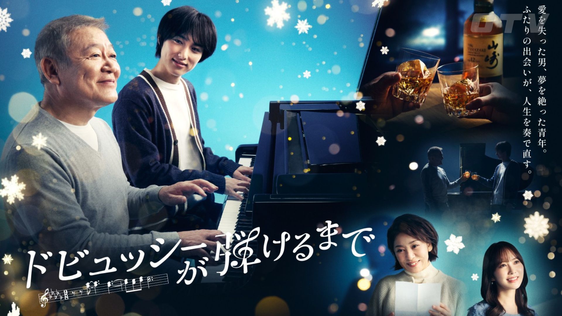 最愛の妻を失い、ふさぎ込む男・渡会喜一郎(わたらい・きいちろう/70)と、才能を持ちながら夢を諦めた青年・佐々木匠(ささき・たくみ/28)の世代も性格も異なる2人の男たちが、思わぬきっかけで始まったピアノのレッスンを通して心を通わせ、止まっていた人生の時間を再び動かしていくヒューマンドラマ。主人公・渡会喜一郎を演じるのは國村隼、夢を諦めた青年はINIの尾崎匠海が演じる。美しい『月の光』の旋律をめぐる交流と、ウイスキーを飲み交わす時間を通じて、2人はそれぞれの過去や傷と向き合い、やがて未来への一歩を踏み出していく、喪失から再生の過程を描く。クリスマスイブの夜に視聴者の心をじんわりとあたため、挑戦する勇気をくれる、そんな1夜限りの特別な時間をお届けする。