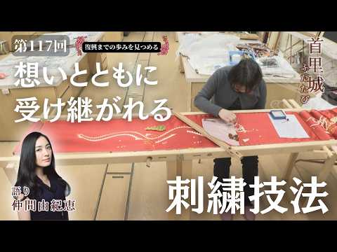伝統的な技法「琉球古刺繍」を解明し、垂飾の復元に励む大学教授を取材しました。